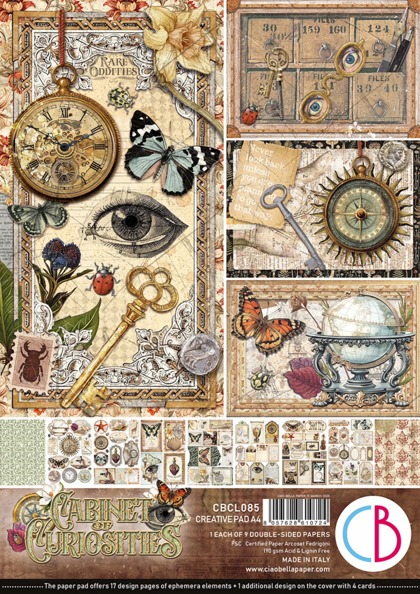 ciao bella cabinet of curiosities art science magic μαγεία τέχνη επιστήμη insects εντομα creative pad creative paper pad μπλοκ a4 χαρτί χαρτιά scrapbooking designer paper pad stack pack collection diecuts ephemera die-cuts εφήμερα tags sentiments fussy fuzzy cutting fussy-cutting fuzzy-cutting cut