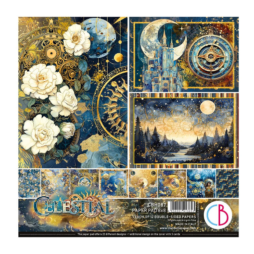 ciao bella celestial ουρανός σύμπαν αστέρια πλανήτες φεγγάρι πλανήτης αστρονομία αστρολογία φαντασία fantasy astronomy astrology space universe planets sky stars moon science επιστημη steampunk χαρτί χαρuτιά μπλοκ συλλογή scrapbooking designer paper pad stack pack collection με για with for about διπλής όψης double-sided double sided 8x8 fussy fuzzy fussy-cutting fuzzy-cutting cut