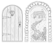 - Εικόνες με μία vintage πόρτα και ένα σκηνικό με ένα σπίτι στην εξοχή. Οι μήτρες κοπής έχουν το περίγραμμα των σφραγίδων
