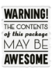 - Διάφανη σφραγίδα σε σχήμα tag με το sentiment "Warning! The contents of this package may be awesome"