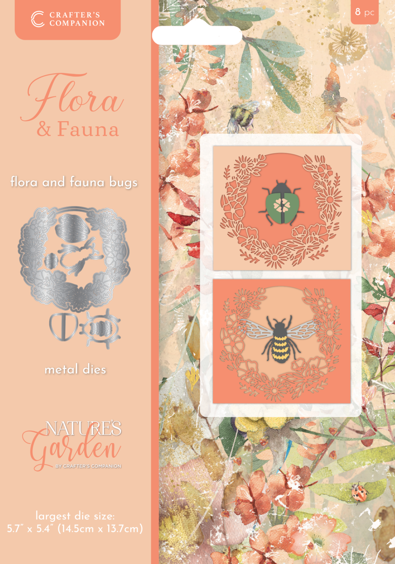 Δεν είναι η πρώτη φορά που η Crafter's Companion δημιουργεί μία συλλογή με θέμα τη φύση, ειδικά μέσα από τη σειρά Nature's Garden. Αυτή τη φορά πρωταγωνιστές της συλλογής Flora & Fauna είναι ο μεθυστικός κόσμος των λουλουδιών και ο μικρόκοσμος των εντόμων! Η συλλογή κινείται στις αποχρώσεις του σομόν με κίτρινες, πράσινες και καφέ λεπτομέρειες.