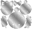 - 6 μεταλλικές μήτρες κοπής με χριστουγεννιάτικες καμπανούλες, ένα φιόγκο και διακοσμητικά φύλλα