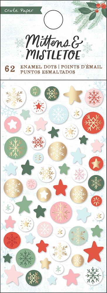 62 αυτοκόλλητα enamel dots με θέμα τα Χριστούγεννα και εικόνες από αστέρια και χιονονιφάδες σε διάφορα μεγέθη. Ιδανικά για κάρτες, scrapbooking και mixed-media έργα, tags, journals, planners και άλλα.