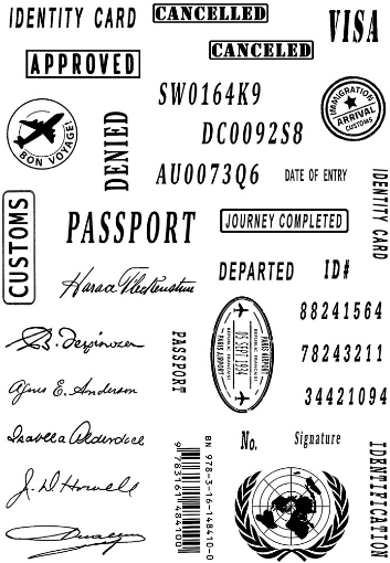 - 34 διάφανες σφραγίδες με λέξεις, φράσεις και σφραγίδες διαβατηρίων