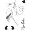 5 διάφανες σφραγίδες με εικόνες από πελαργούς, ποντικάκια, βάτραχους, καρδούλες και τη φράση "New Baby".