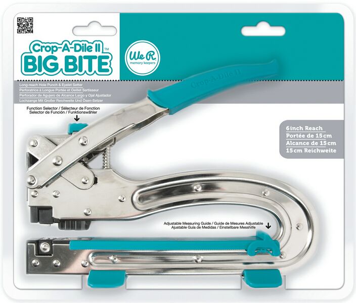 Το Big Bite είναι το απόλυτο εργαλείο για να βάζουμε πριτσίνια , snaps και gromlets. Επίσης μπορεί να ανοίξει τρύπες σχεδόν παντού. Σε χαρτί, ύφασμα, πλαστικό, δερμα, chipboard, αλουμίνιο κλπ κλπ. Είναι τόσο δυνατό που μπορεί να τρυπήσει με την μια, ολόκληρο μπλοκ χαρτιών. Εγώ το χρησιμοποιώ στη βιβλιοδεσία κατά κόρων αφού μπορεί να τρυπήσει ολόκληρο το βιβλίο μου με μια κίνηση. Επίσης είναι έτσι φτιαγμένο που μπορεί να τρυπήσει μέχρι και στο κέντρο ενός 30x30cm layout. Στη συσκευασία περιλαμβάνονται οδηγίες.