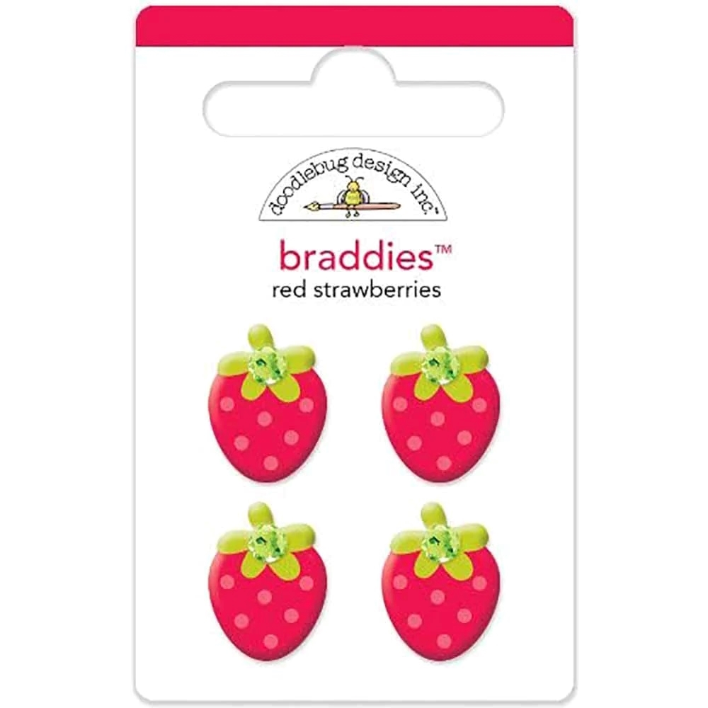 Doodlebug Design Braddies Αυτοκόλλητα Brads - Red Strawberries, 4 τεμ.