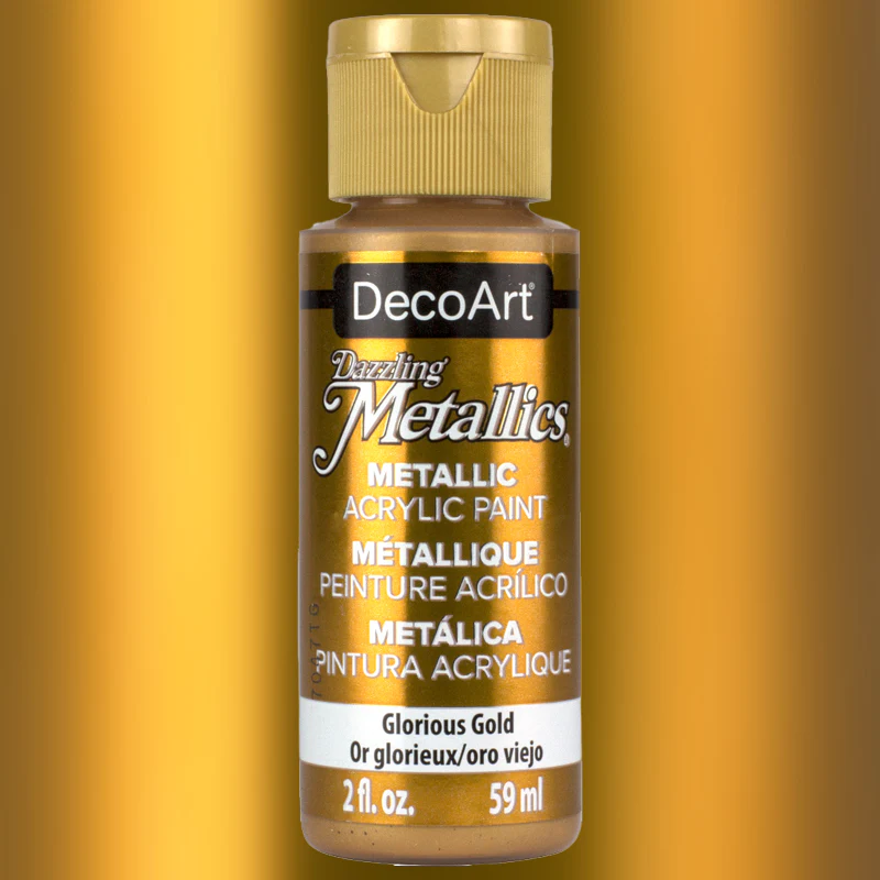 Το DecoArt Dazzling Metallics – Glorious Gold από τη DecoArt είναι μεταλλικό ακρυλικό χρώμα με βάση το νερό, σχεδιασμένο για εφαρμογές όπου ζητείται φωτεινό, λαμπερό και εμφανώς μεταλλικό χρυσό αποτέλεσμα.