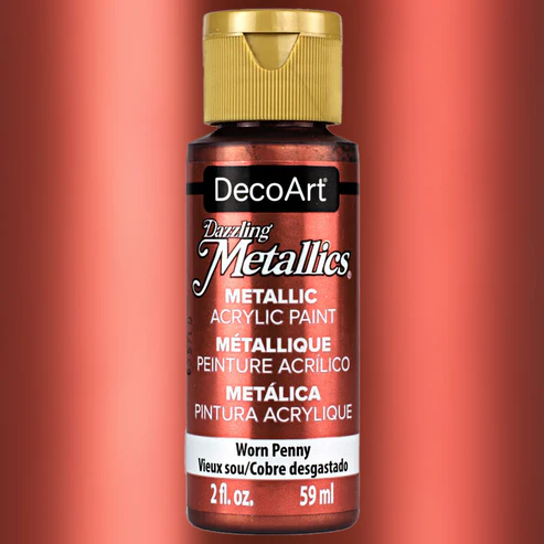 Το DecoArt Dazzling Metallics – Worn Penny από τη DecoArt είναι μεταλλικό ακρυλικό χρώμα με βάση το νερό, σχεδιασμένο για εφαρμογές που απαιτούν ζεστό, βαθύ και καθαρά μεταλλικό copper αποτέλεσμα.