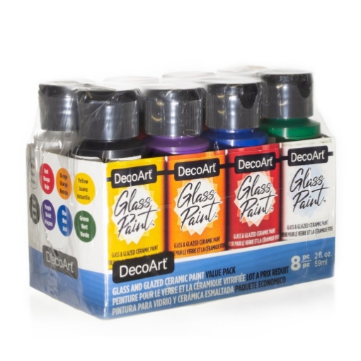 DecoArt Glass Paint Value Pack - Ακρυλικά Χρώματα για Γυαλί & Πορσελάνη, Σετ 8τμχ