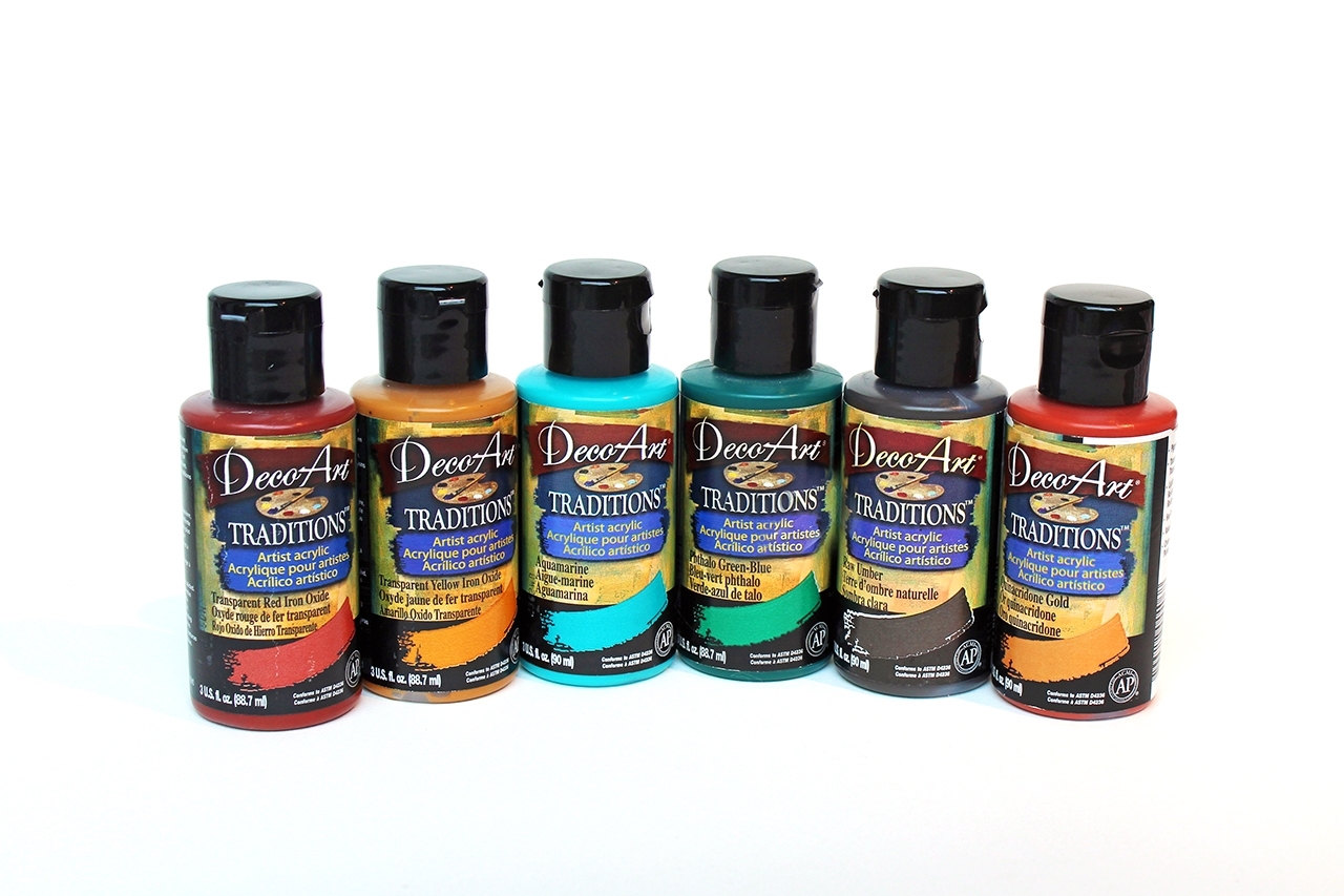 Τα χρώματα Traditions είναι η καλύτερη artist's σειρά ακρυλικού της DecoArt. Φτιαγμένα με τις καλύτερες χρωστικές και με ρητίνη για binder, απευθύνονται στον επαγγελματία ή στον ψαγμένο ερασιτέχνη. Έχουν medium viscosity, δεν είναι ούτε πολύ υγρά ούτε heavy body, και γι' αυτό είναι ιδανικά για μια πληθώρα τεχνικών. Από τεχνικές impasto, μέχρι ακουαρέλας - και φυσικά όλες τις ενδιάμεσες - θα γίνουν το μοναδικό χρώμα που θα χρησιμοποιείτε!