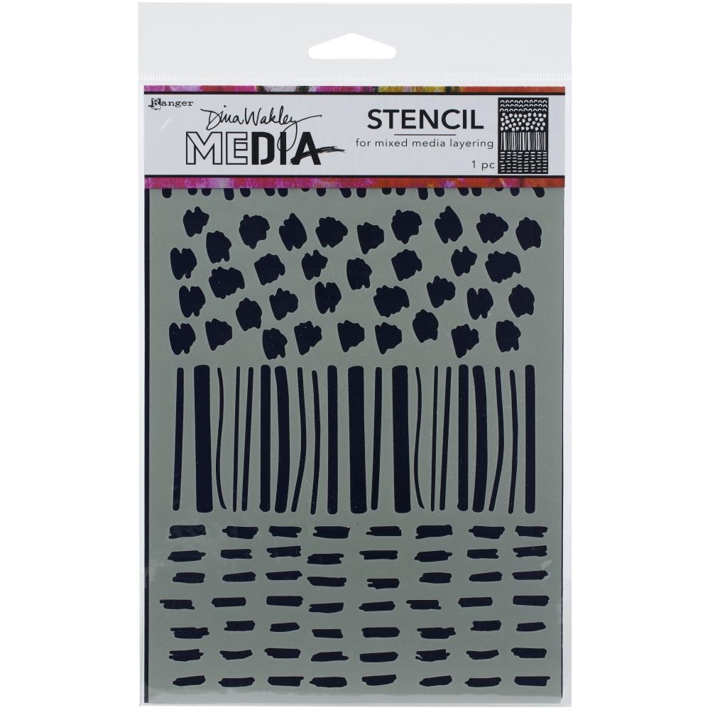 Το Marks από τη σειρά Dina Wakley MEdia είναι ένα στένσιλ με ελεύθερα, ακανόνιστα σημεία που λειτουργούν σαν λεπτομέρειες μέσα στη σύνθεση. Περιλαμβάνει διαφορετικά στοιχεία — γραμμές, πινελιές και μικρά μοτίβα — που μπορείς να χρησιμοποιήσεις για να δώσεις ζωή και ενδιαφέρον στην επιφάνειά σου.