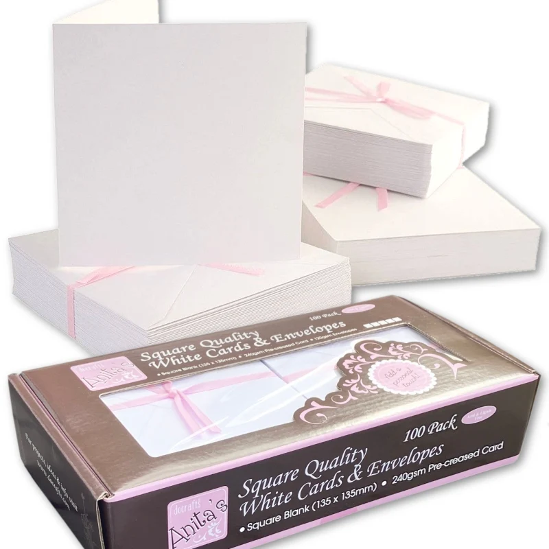 τετράγωνες κάρτες scrapbooking, σετ 200 καρτών Docrafts, λευκές κάρτες με φακέλους, card blanks τετράγωνες, χειροποίητες κάρτες Ελλάδα, Anita’s square cards, προσκλήσεις λευκές, square white cards bulk, Docrafts Anita’s 200 cards set, card blanks with envelopes, white square invitation cards, handmade greeting cards, cardmaking supplies