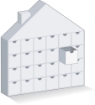 Το σπιτάκι είναι φτιαγμένο από ανθεκτικό, λευκό chipboard, έχει διάσταση 38 x 40,6 x 5,7 cm (15" x 16") και περιέχει 24 συρταράκια διαστάσεων 5,7 x 5,7 x 5,7 cm (2.25" x 2.25" x 2.25") το καθένα.