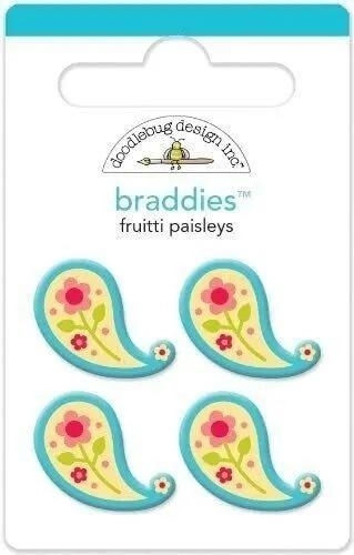 Doodlebug Design Braddies Αυτοκόλλητα Brads - Fruity Paisleys, 4 τεμ.