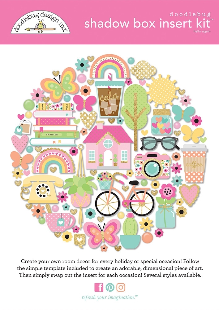 Τα shadow box insert kits της Doodlebug, περιλαμβάνουν όλα τα διακοσμητικά που θα χρειαστείτε για να δημιουργήσετε ένα μοναδικό διακοσμητικό για το παιδικό δωμάτιο, το craft room ή όπου αλλού χρειάζεται χρώμα και καλή διάθεση! Εσείς διαλέξτε το shadow box και είστε έτοιμοι! Και φυσικά και αφού το έχετε φτιάξει είναι πολύ απλό να αλλάξετε απλά το insert στο shadow box για να έχετε κάτι καινούργιο για κάθε περίσταση.