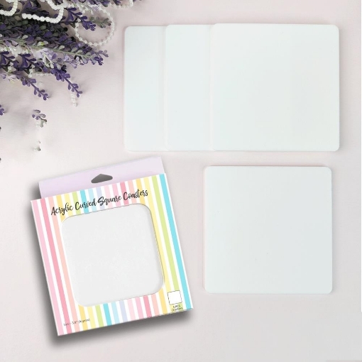 - 4 τετράγωνα ακρυλικά σουβέρ με στρογγυλεμένες άκρες