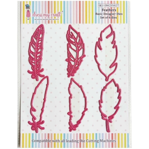 6 μεταλλικές μήτρες κοπής από την Dress My Craft με εικόνες από φτερά.