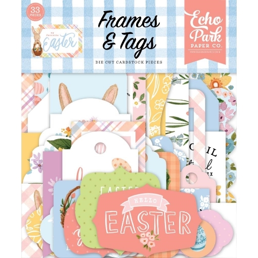 33 die cuts με tags και πλαίσια. Εικόνες από πασχαλινά αβγά, λαγουδάκια, φράσεις, λουλούδια και άλλα.