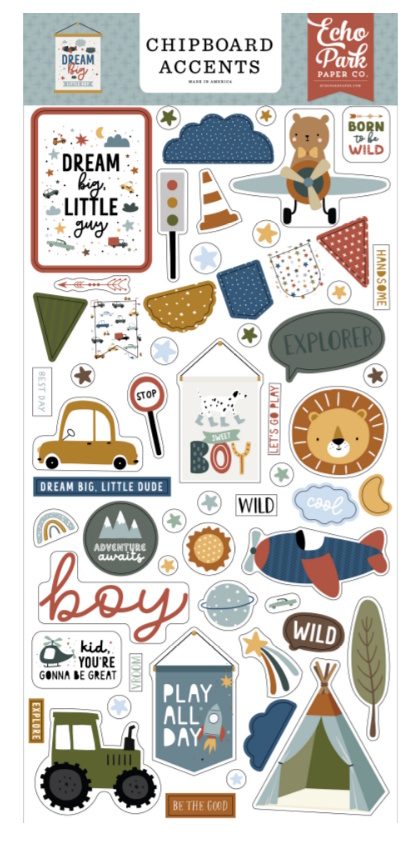 Η συλλογή Dream Big Little Boy της Echo Park είναι αφιερωμένη σε όλα εκείνα τα μικρά cool... τυπάκια που έχουν κλέψει τις καρδιές μας ανεπιστρεπτί! Σε αποχρώσεις του μπλε, boy-themed παιχνιδάκια και τρυφερά sentiments συνθέτουν την πιο μοναδική ιστορία για αγοράκια που κυριολεκτικά τα... σπάνε!