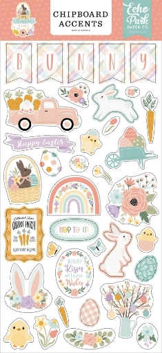 👉Η συσκευασία περιλαμβάνει 36 διακοσμητικά chipboard με θέμα το Πάσχα. Εικόνες με πασχαλινά καλάθια, λαγουδάκια, λουλούδια, καροτσάκια κήπου, φορτηγά, καρότα, sentiments και άλλα.