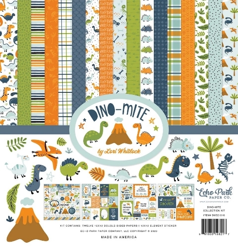 H Lori Whitlock σχεδιάζει τη συλλογή Dino-Mite για την Echo Park και το αποτέλεσμα είναι παιχνιδιάρικα… εκρηκτικό! Η Lori προσκαλεί τους απανταχού λάτρεις των δεινοσαύρων σε μια προϊστορική περιπέτεια που δεν έχει ηλικία: αξιολάτρευτοι T-Rex, φιλικοί τρικεράτωπες, πτεροδάκτυλοι και στεγόσαυροι παρελαύνουν σε ένα χαρούμενο σκηνικό στις αποχρώσεις του μπλε, του πορτοκαλί και του πράσινου.