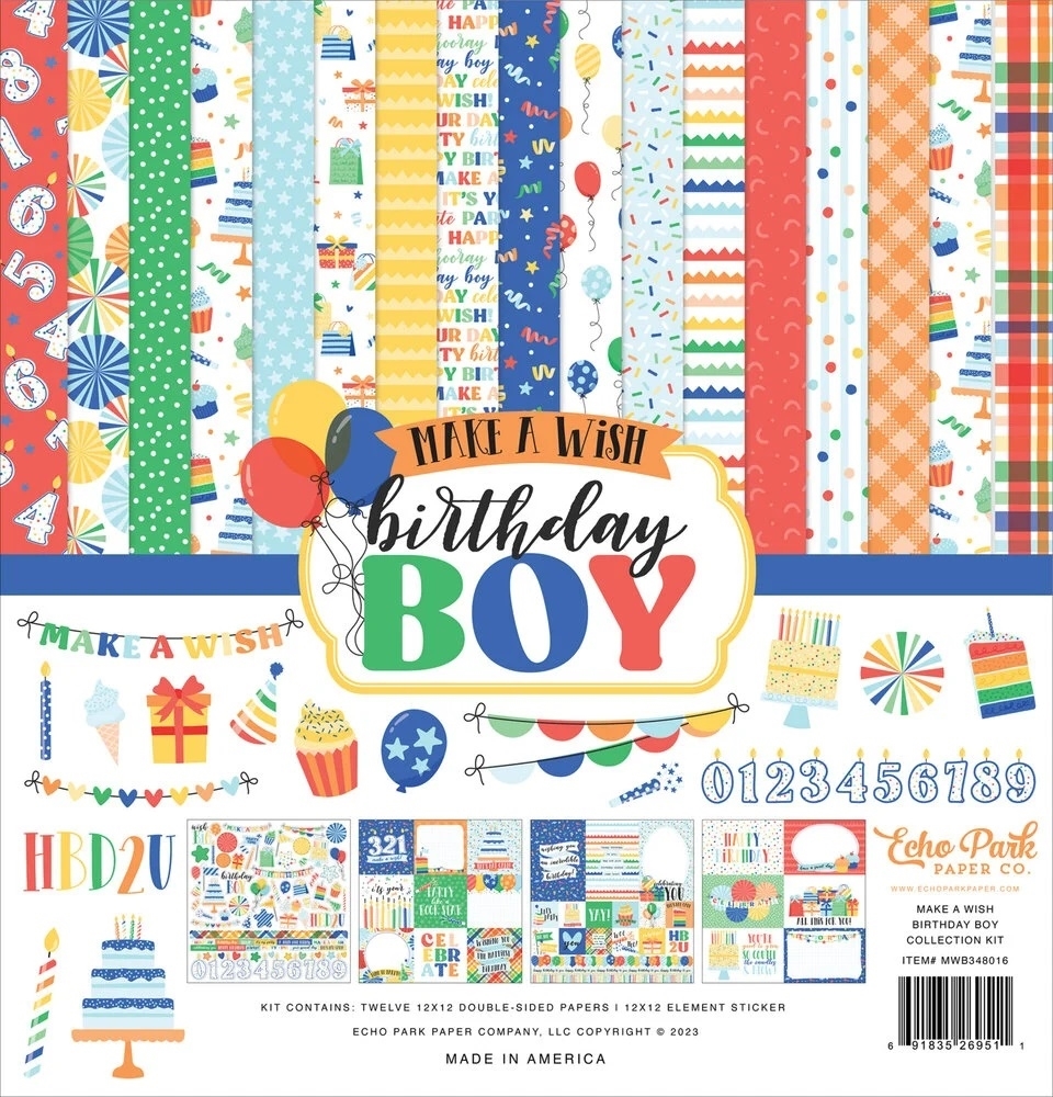 Κάνε μια ευχή, αγοράκι, σήμερα είναι η μέρα σου! Η συλλογή Make a Wish Birthday Boy της Echo Park είναι μια χαρούμενη ιστορία γενεθλίων αποκλειστικά αφιερωμένη στα μικρά τυπάκια που έχουν κλέψει την καρδιά μας για πάντα! Η συλλογή κινείται στις αποχρώσεις του μπλε, του πορτοκαλί και του κίτρινου.