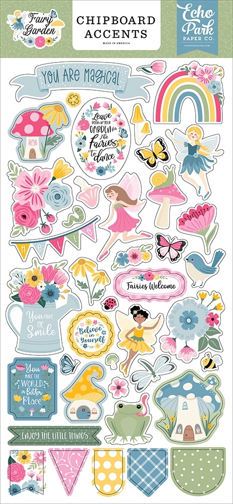 Η Echo Park παρουσιάζει τη συλλογή Fairy Garden και σας προσκαλεί σε ένα μαγικό ταξίδι γεμάτο όμορφες εκπλήξεις όπου το αδύνατο γίνεται δυνατό! Χαρούμενες νεράιδες, μαγεμένοι κήποι και στοιχεία από κόσμους φανταστικούς συνθέτουν μια συναρπαστική ιστορία στις αποχρώσεις του μπλε, του ροζ και του κίτρινου!