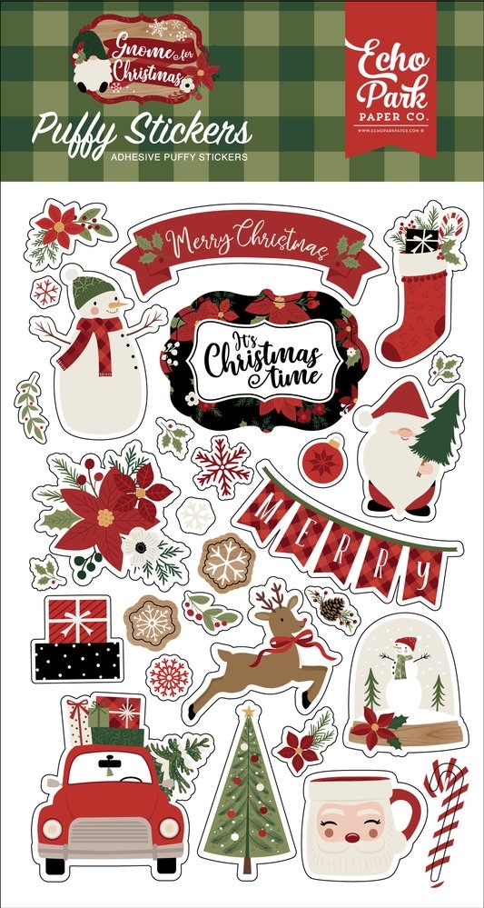 30 puffy αυτοκόλλητα από τη συλλογή Gnome For Christmas της Echo Park με θέμα τα Χριστούγεννα.