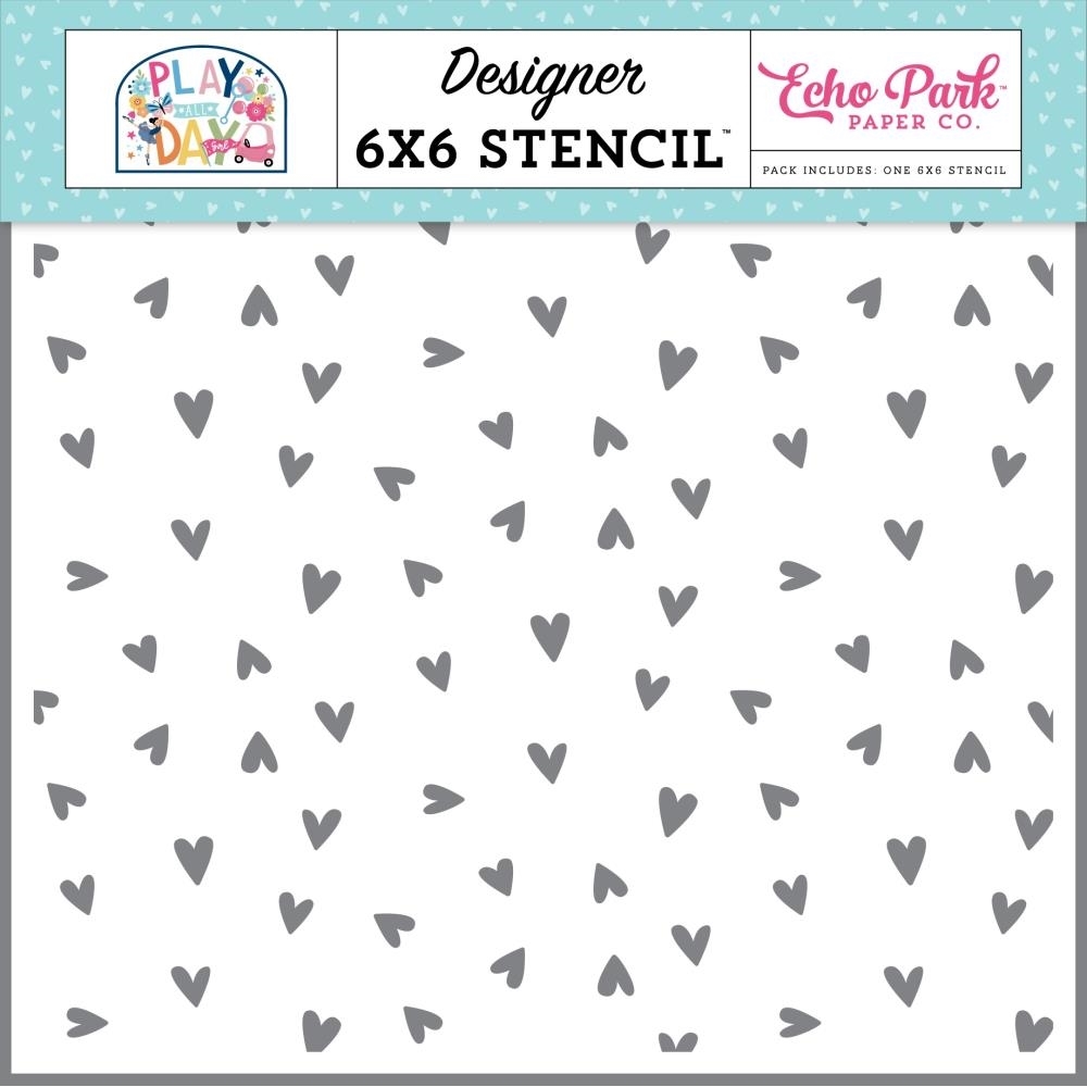 1 στένσιλ με καρδούλες από τη συλλογή Play All Day Girl Collection της Echo Park.