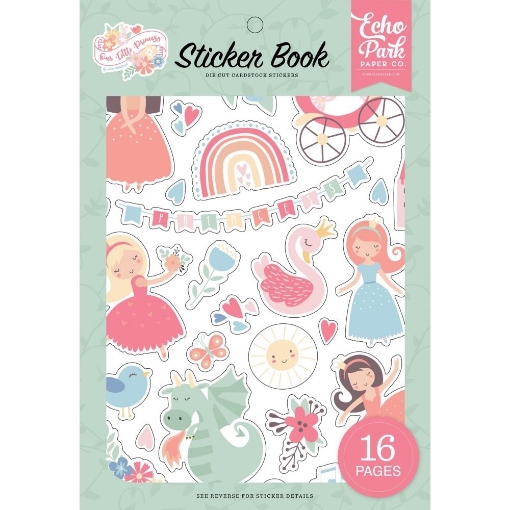 Μπλοκ αυτοκόλλητων από τη συλλογή Our Little Princess που έχει σχεδιάσει η Lori Whitlock για την Echo Park. Περιέχει 16 φύλλα με αυτοκόλλητα με εικόνες από quotes, μικρές πριγκίπισσες, δράκους, κύκνους, κάστρα, λουλούδια, ουράνια τόξα, άλογα, λουλούδια και άλλα πολλά.