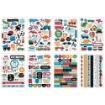 Μπλοκ αυτοκόλλητων από τη συλλογή Play All Day Boy της Echo Park. Περιέχει 16 σελίδες αυτοκόλλητων σε 8 σχέδια (2 φύλλα από το κάθε σχέδιο) με εικόνες από αυτοκίνητα, μπάλες, δεινόσαυρους, quotes, πλαίσια, tags, banners και άλλα.