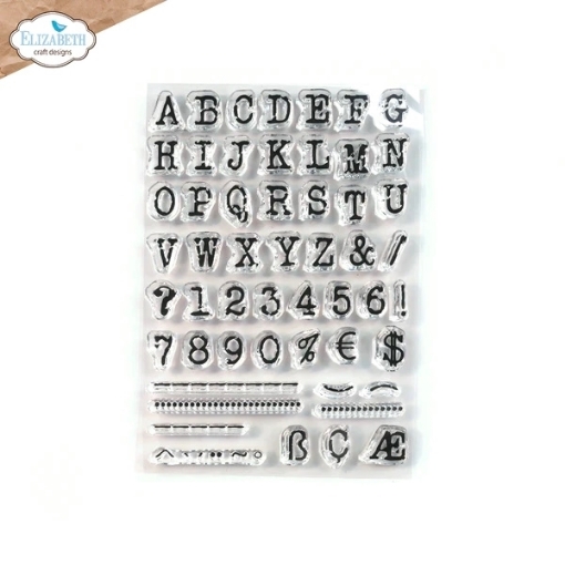 Μία συλλογή από 53 διάφανες σφραγίδες από την Elizabeth Craft Designs με λατινικά κεφαλαία γράμματα, αριθμούς και σύμβολα, ιδανικές για planner, journal, art journals, και πολλά άλλα.