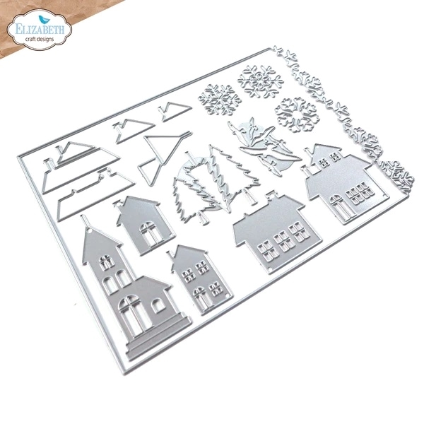 👉 Η συσκευασία περιέχει 16 μεταλλικές μήτρες κοπής που φτιάχνουν ένα χιονισμένο χριστουγεννιάτικο χωριό.