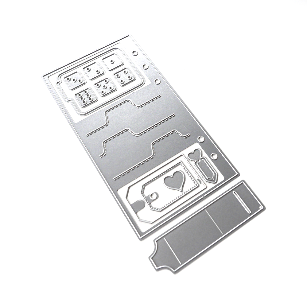 - 13 λεπτές μεταλλικές μήτρες κοπής με μήτρα για να κόψετε ολόκληρη σελίδα με tabs για το planner ή journal σας καθώς και ένα μικρό tag με μία καρδιά και άλλα.