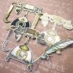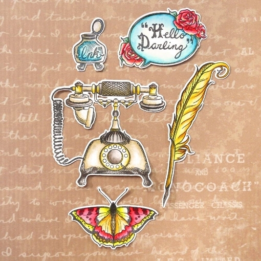👉 Η συσκευασία περιέχει 5 μεταλλικές μήτρες κοπής με το περίγραμμα ενός vintage τηλέφωνου, ενός κοντυλογράφου, μιας πεταλούδας, ενός μελανιού και ενός πλαισίου.