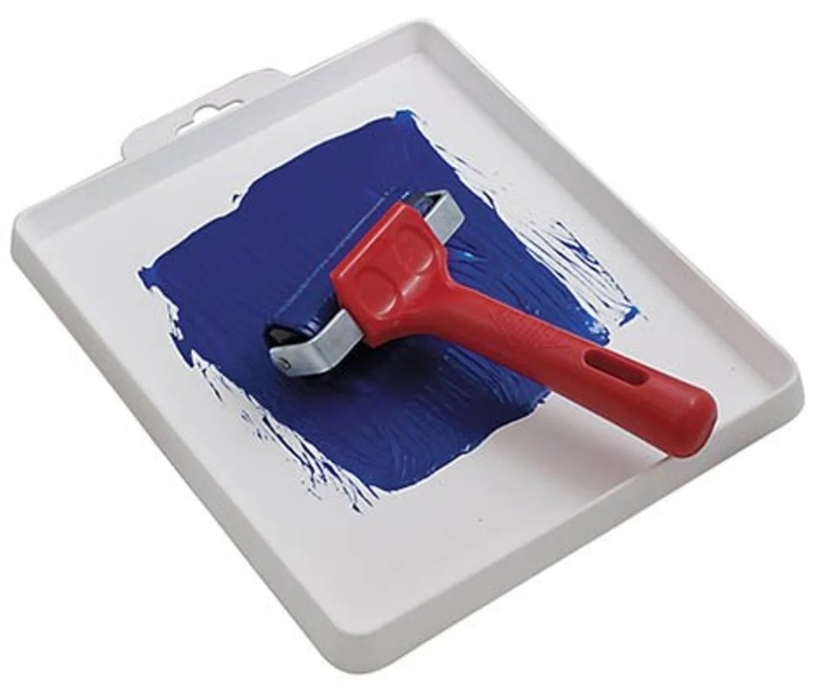 💡 Tip: Pour a small amount of ink or paint into the centre of the tray and roll outwards — this ensures an even coat before you transfer to your block or surface. Clean immediately after use to preserve the tray.