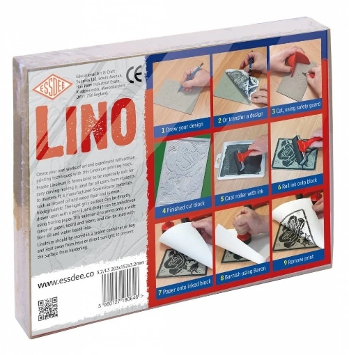 Το linoleum είναι το ιδανικό υλικό για χαρακτική και γίνεται με φυσικά συστατικά όπως λινέλαιο και ξυλάλευρο. Το Lino της Essdee είναι βιοδιασπώμενο και μπορεί να χρησιμοποιηθεί με μελάνια οινοπνεύματος και λαδομπογιές. Αποτυπώνει στα περισσότερα χαρτιά, σε χαρτόνι και ύφασμα.