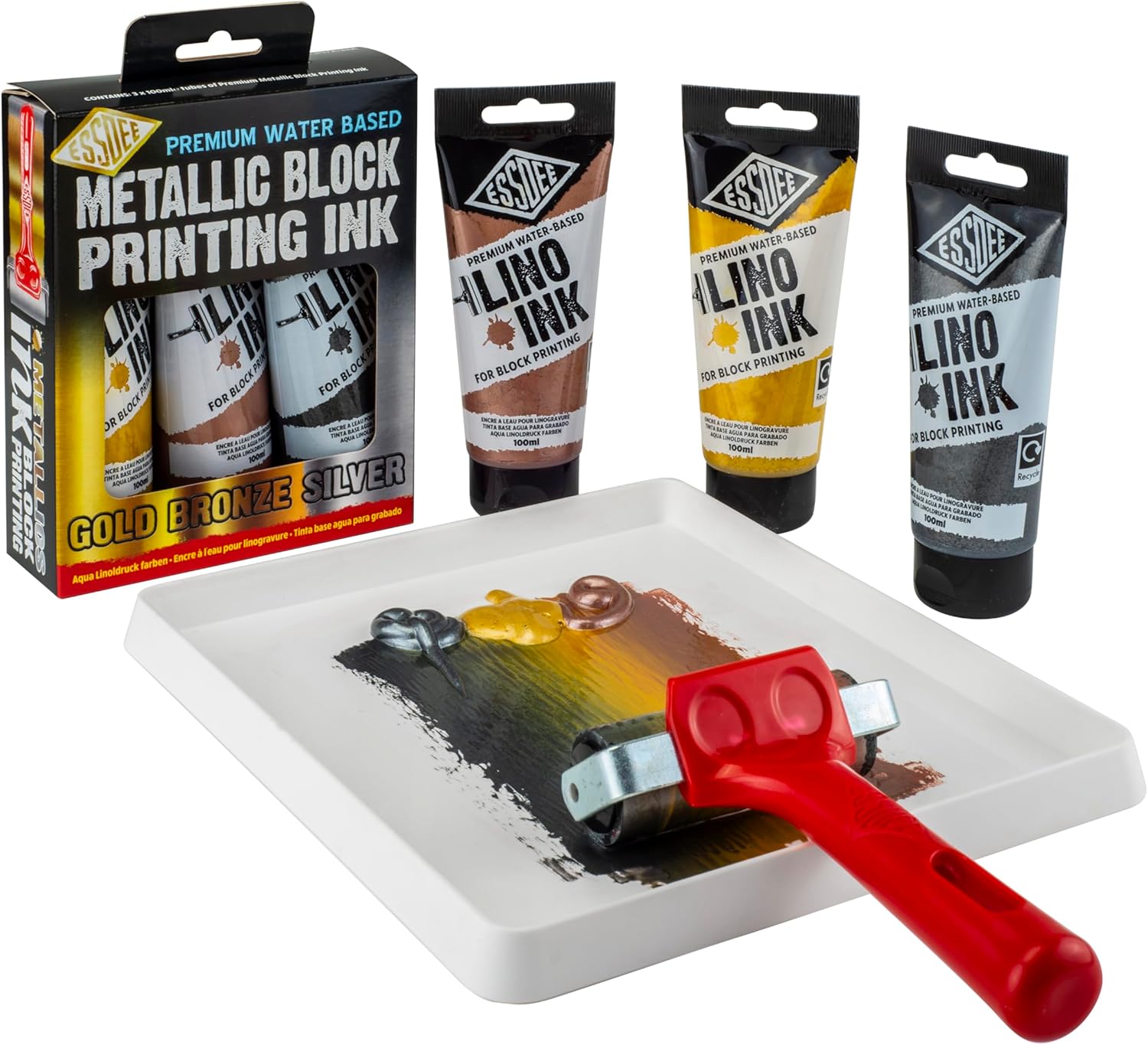Τα Essdee Metallic Block Printing Inks έχουν σχεδιαστεί για block και lino printing όπου θέλεις λάμψη χωρίς να θυσιάζεις τον έλεγχο και τη λεπτομέρεια. Η υδατοδιαλυτή τους βάση προσφέρει ομοιόμορφη κάλυψη και σταθερό μεταλλικό αποτέλεσμα, χωρίς «νερά» ή απώλεια έντασης.