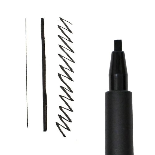 H 2.5mm φαρδιά και επίπεδη μύτη του μαρκαδόρου αυτού τον κάνει ιδανικό για καλλιγραφία. Χρησιμοποιεί το γνωστό μελάνι (india ink) των μαρκαδόρων Faber Castell Pitt είναι αδιάβροχο όταν στεγνώσει και έχει υψηλή περιεκτικότητα σε χρωστική. Το μελάνι αυτό δεν "ποτίζει" το χαρτί δίνοντας μεγαλύτερη άνεση και ακρίβεια. Εκτός από καλλιγραφία είναι ιδανικός και για σκίτσο, ζωγραφική, layouts, fashion design και illustration.