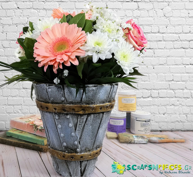 Κι ένα tip: Μέσα στο κασπό έκρυψα ένα μικρότερο βάζο, μέσα στο οποίο έβαλα νερό για να μη διψάνε τα λουλουδάκια μου!