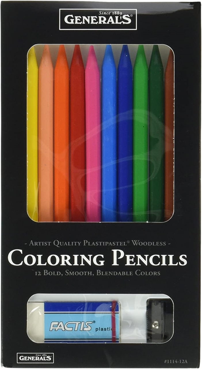 Το General’s Factis Plastipastel Coloring Pencil Set 1114-12A είναι ένα πρακτικό και αξιόπιστο σετ χρωματισμού, σχεδιασμένο για έλεγχο και ευκολία στη χρήση. Τα Plastipastel μολύβια είναι χρωματιστά μολύβια πλαστικής σύνθεσης (plastic coloring pencils), που προσφέρουν λεία, ομοιόμορφη απόδοση χρώματος και σβήνονται με γόμα, επιτρέποντας διορθώσεις χωρίς να καταστρέφεται το χαρτί.