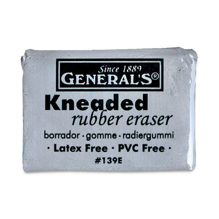 Η Kneaded Rubber Eraser (139BP) της General Pencil Company είναι μια μαλακή γόμα, ειδικά σχεδιασμένη για χρήση με κάρβουνο, γραφίτη και carbon. Σε αντίθεση με τις κλασικές γόμες, δεν φθείρει την επιφάνεια του χαρτιού, αλλά απορροφά το υλικό, επιτρέποντας λεπτές διορθώσεις και ελεγχόμενες τονικές παρεμβάσεις.