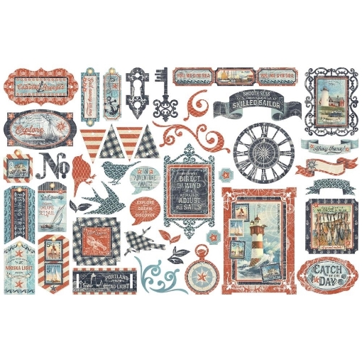 Αφουγκραστείτε τον ήχο των κυμάτων και γευτείτε την αλμύρα της θάλασσας! Ανεμοδαρμένοι φάροι, εικόνες από γαλήνια ψαροχώρια, περίτεχνα κλειδιά, πυξίδες και vintage διαφημίσεις σε ναυτικά μοτίβα συνθέτουν την ξεχωριστή συλλογή Catch of the Day της Graphic 45.