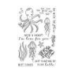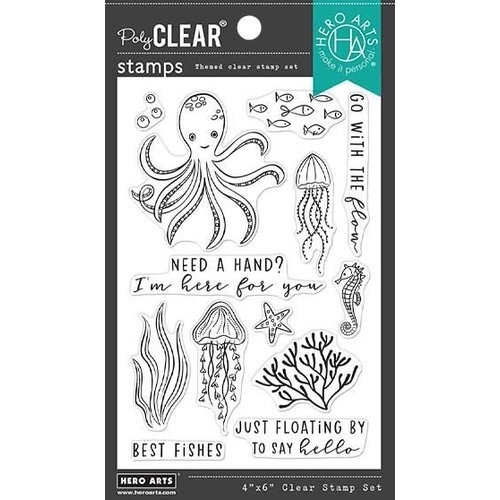 13 σφραγίδες από διάφανο φωτοπολυμερές της Hero Arts με εικόνες από με χταπόδια, μέδουσες, ψάρια φύκια και αστερίες και τις φράσεις "NEED A HAND? I’m here for you", "Just FLOATING BY TO SAY hello", “BEST FISHES" και“GO WITH THE flow”.