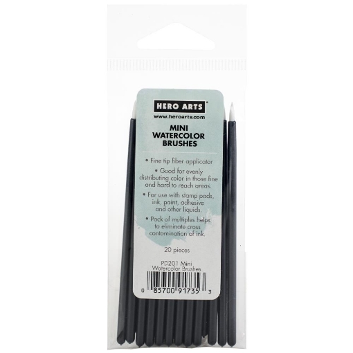 20 mini λεπτά πινέλα ακουαρέλας από την Hero Arts, ιδανικά για λεπτομέρειες! Κατάλληλα για χρήση με stamp pads, ακρυλικά, μελάνια και άλλα πολλά.