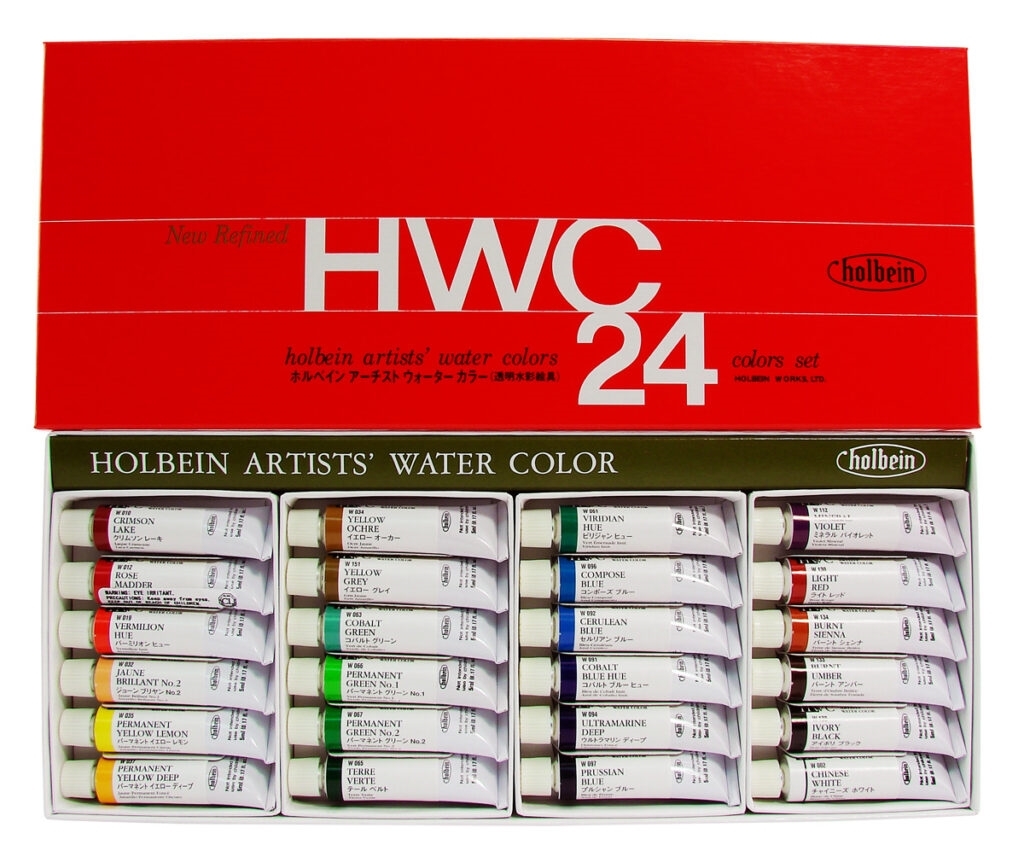 Τα χρώματα ακουαρέλας Holbein κατασκευάζονται στην Ιαπωνία εδώ και περισσότερο από έναν αιώνα. Πρόκειται για ευρωπαϊκού στυλ, διάφανη ακουαρέλα που όμως διατηρεί τα χαρακτηριστικά για τα οποία φημίζεται η ιαπωνική σχολή ακουαρέλας.