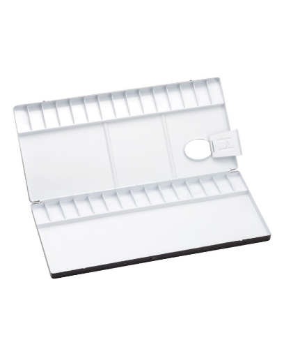 Ελαφριά παλέτα από αλουμίνιο από την Holbein. Με μόνο 260 γραμμάρια βάρος και κάτω από 2 εκατοστά φάρδος, είναι η ιδανική επιλογή για να την έχετε πάντα μαζί σας, αφού πραγματικά χωράει παντού χωρίς συμβιβασμούς στο πόσα χρώματα έχετε μαζί σας.