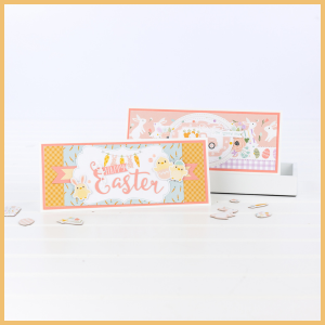 Χρησιμοποιήστε τα χαρτιά και τα αυτοκόλλητα για να δημιουργήσετε μοναδικές πασχαλινές κάρτες για τους φίλους και την οικογένεια σας. Μία χειροποίητη κάρτα είναι πάντα η καλύτερη επιλογή για να συνοδέψει ένα δώρο τις ημέρες εκείνες. Οι απαλές αποχρώσεις και τα χαρούμενα σχέδια θα φέρουν χαμόγελα σε όσους τις λάβουν.