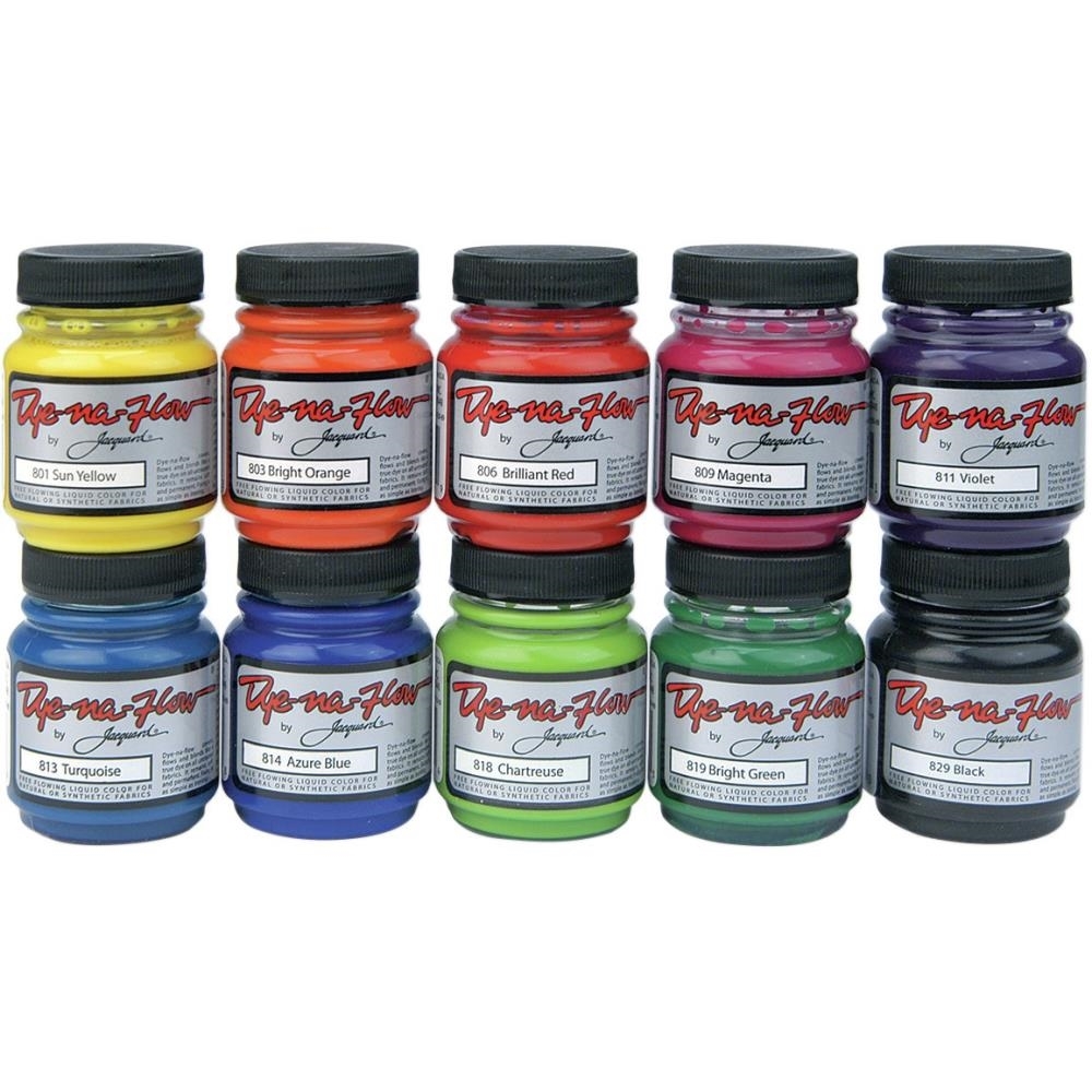 Τα Dye-Na-Flow είναι συμπυκνωμένα, διάφανα ακρυλικά χρώματα, μόνιμα για οποιαδήποτε πορώδη ή ημι-πορώδη επιφάνεια συμπεριλαμβανομένων φυσικών και συνθετικών υφασμάτων, δέρματος και ξύλου. Από πολλές απόψεις μοιάζουν με χρωστικές. Απλώνονται στο ύφασμα μέχρι να απορροφηθούν πλήρως και ομοιόμορφα, ποτίζοντας τις ίνες αντί να "κάθονται" στην επιφάνεια όπως άλλα χρώματα και μελάνια. Τα χρώματα τους είναι έντονα, ανθεκτικά στο πλύσιμο και δεν αλλάζουν την υφή του υφάσματος κάνοντας τα ένα ιδανικό εργαλείο όταν δεν μπορείτε να χρησιμοποιήσετε πραγματικές χρωστικές.